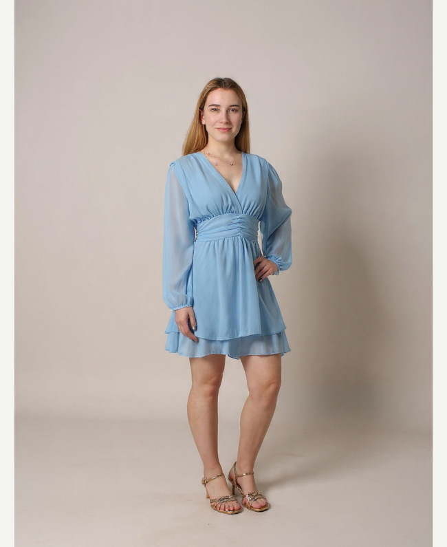 Dress Chiara - Kort Jurkje met V-hals Semi-transparante Mouwen
