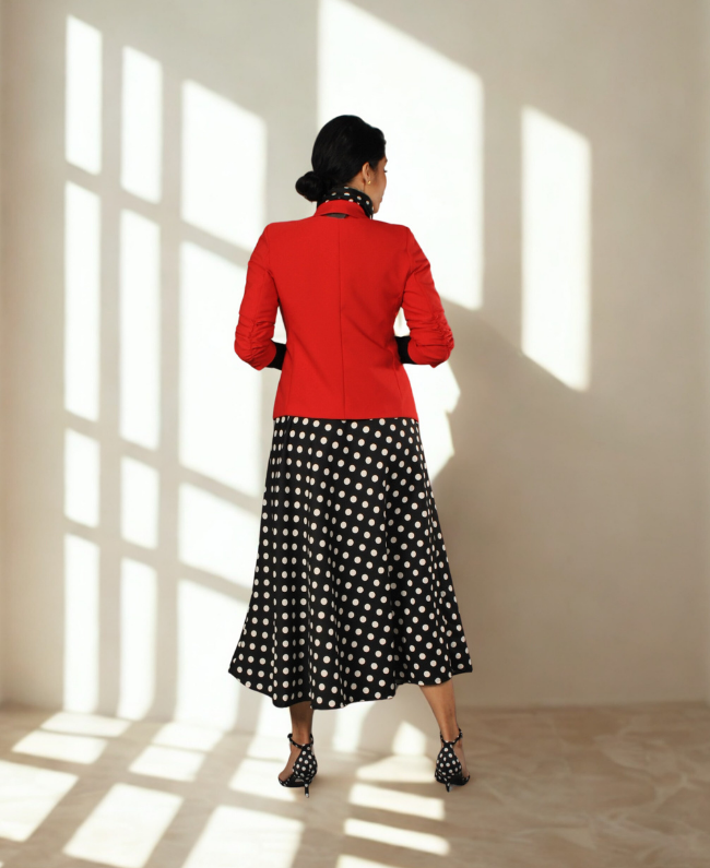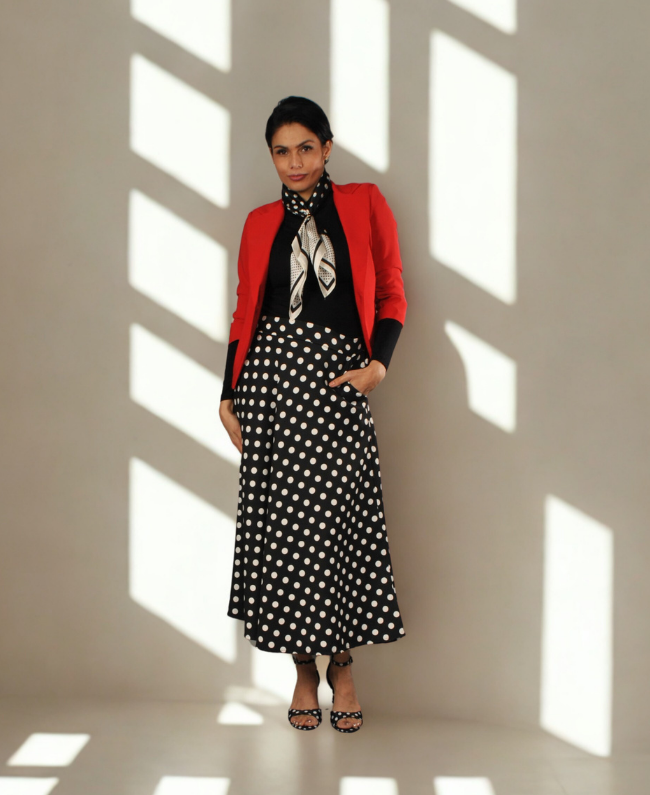 Rok Aurora - Lange Rok met Polkadot Print en Steekzakken
