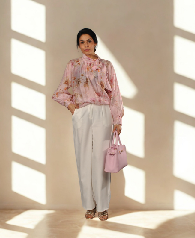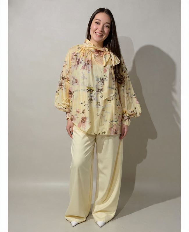 Ontdek de Blouse Toscane: een romantische licht transparante blouse met speels strikdetail en prachtige bloemenprint. Deze elegante blouse combineert Toscaanse romantiek met vrouwelijke details en is perfect voor een chique look.