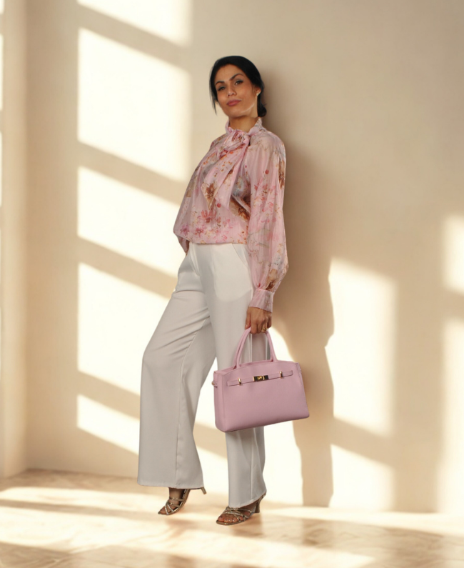 De Blouse Toscane is perfect te combineren met een jeans, pantalon of rok voor een romantische outfit. Leuk te combineren met onze H tassen in de pastelkleuren!