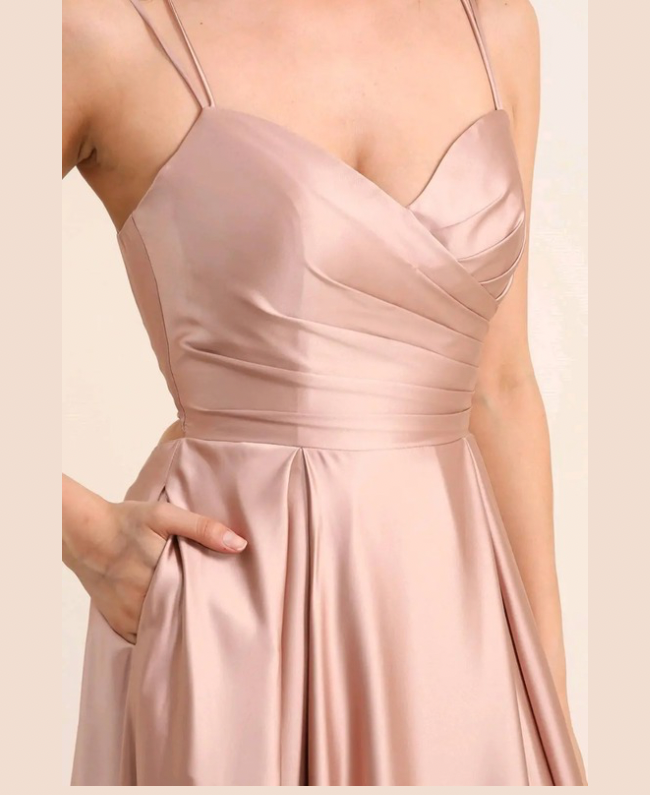 De mooie split voegt een vleugje allure toe, terwijl de praktische zakken zorgen voor gemak zonder in te leveren op stijl. Het smoke detail aan de voorkant geeft een verfijnd accent en maakt de jurk uniek en fashionable.