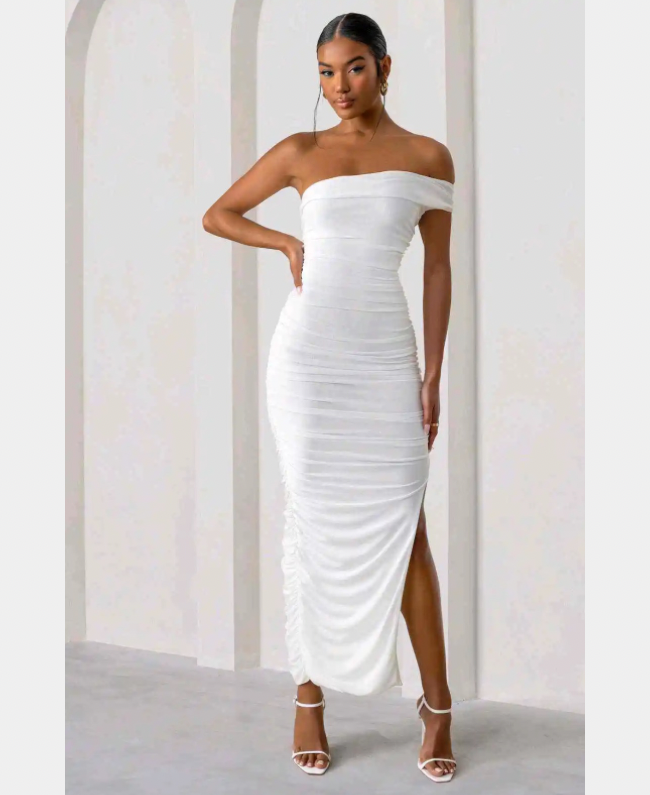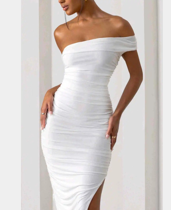 Ga stijlvol op pad met onze witte aangesloten jurk die volledig om je lichaam valt. Deze bodycon jurk accentueert je silhouet en geeft een vrouwelijke en elegante uitstraling.