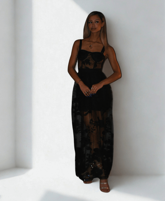 Deze stijlvolle jurk met transparante onderkant en elegante bloemenprint is een echte eyecatcher. De stof valt soepel en beweegt mooi mee, terwijl het transparante gedeelte aan de onderzijde een subtiel en gevoelig accent geeft. De jurk grotere klasse met een originele speelsheid — ideaal voor een feestje, diner of bijzondere gelegenheid.