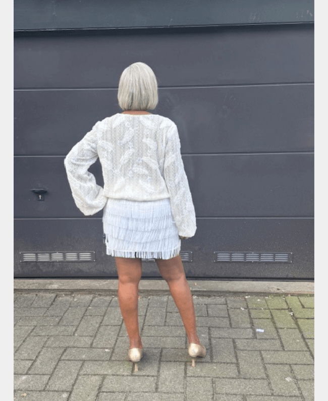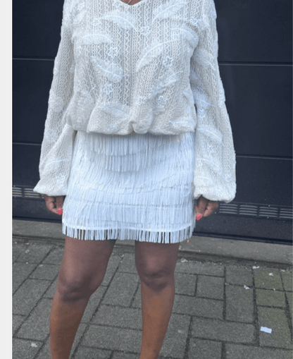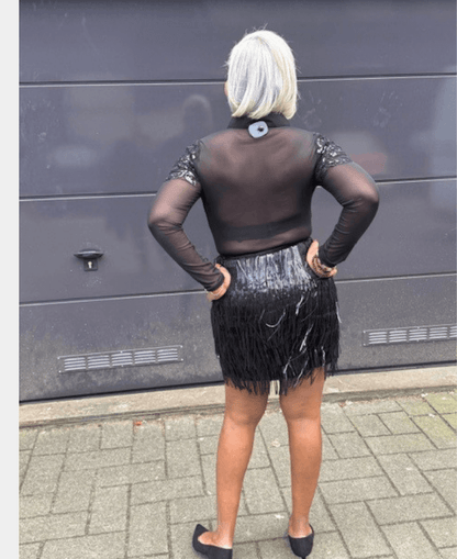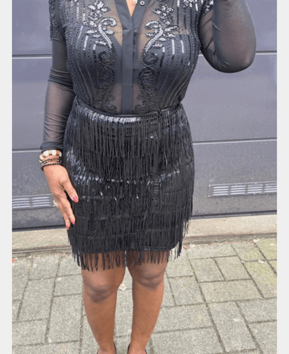 Reveal your style with our fashionable skirts embellished with fringes and glitter . Ideal for making a statement , these designs are a must-have for your wardrobe.