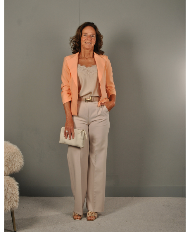 Ontdek deze stijlvolle blazer met gesmokte mouwen, perfect om te dragen over een jurk of gecombineerd met een pantalon. Combineer de blazer met onze Donna Pantalon Slim, Donna Pantalon Flair, Donna Pantalon Recht of een bijpassend gilet voor een complete, modieuze outfit.