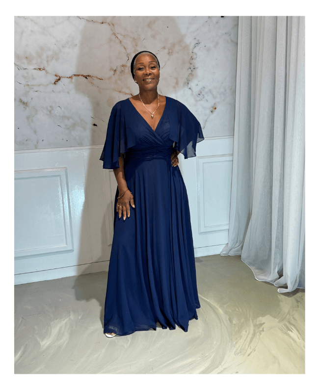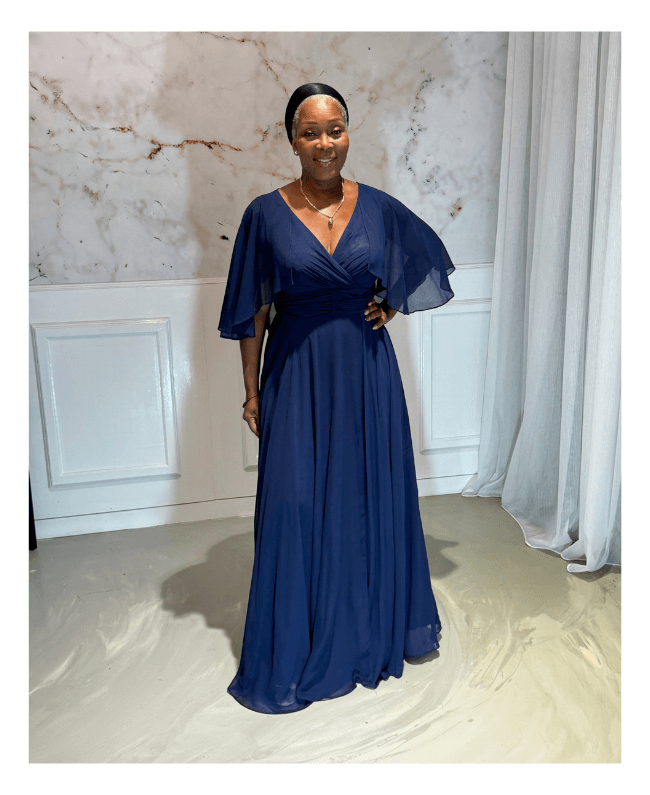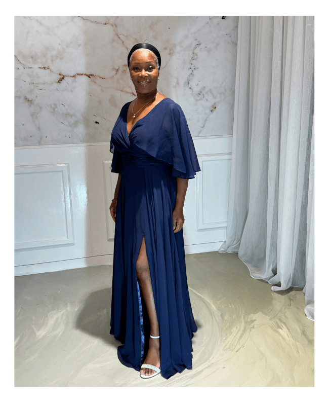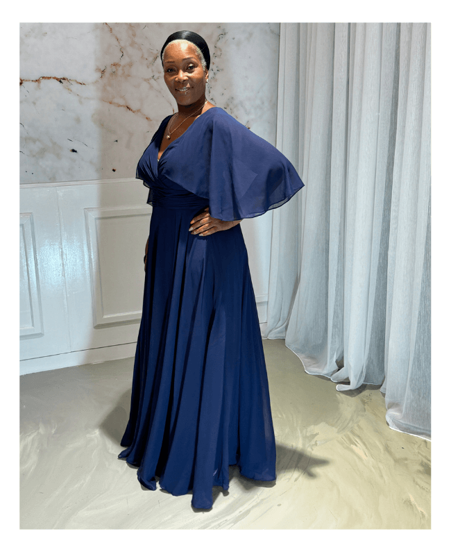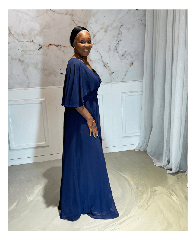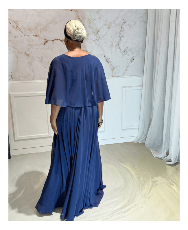 Ontdek deze elegante blauw galajurk met een vaste bolero, perfect voor wie graag een stijlvolle jurk draagt zonder blote armen. Deze avondjurk combineert klasse, comfort en verfijning – ideaal voor gala’s, bruiloften of andere speciale gelegenheden.