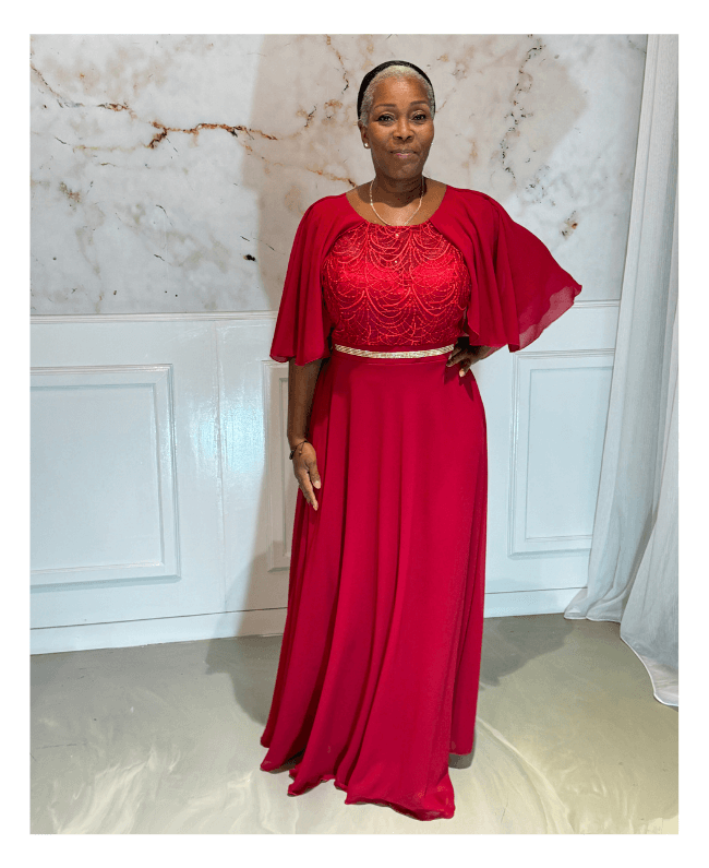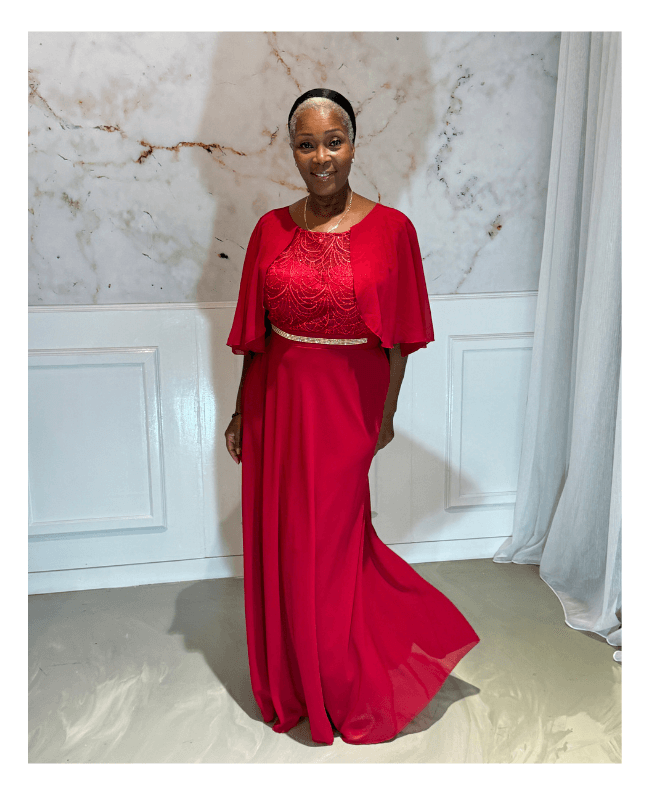 Ontdek deze elegante rode galajurk met een vaste bolero, perfect voor wie graag een stijlvolle jurk draagt zonder blote armen. Deze avondjurk combineert klasse, comfort en verfijning – ideaal voor gala’s, bruiloften of andere speciale gelegenheden.